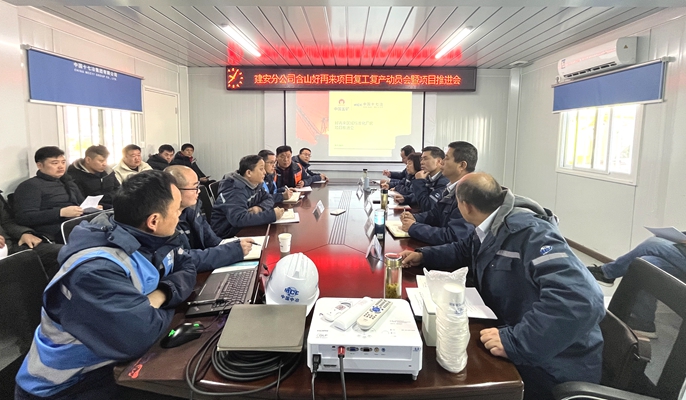 1月30日,中国十七冶建安分公司含山好再来项目部召开复工复产动员会暨项目推进会,分公司经理朱广剑、副经理孙宏勇,机关相关职能部门负责人、项目部领导班子成员、各分包单位负责人参加。