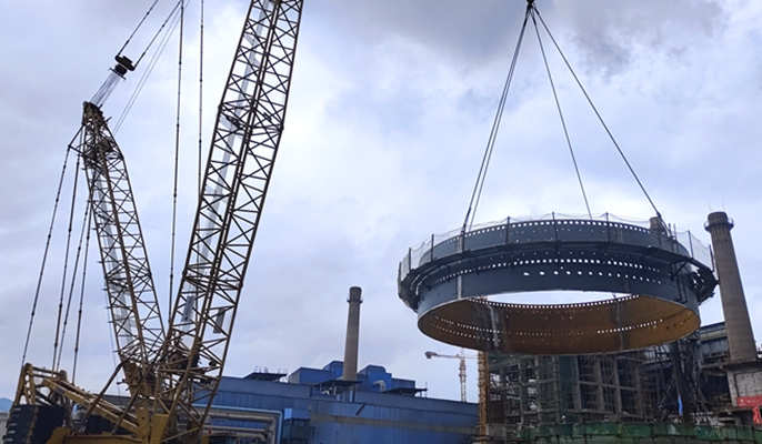 4月7日上午,中国十七冶冶金分公司承建的福建三钢三明本部高炉工程项目新2#高炉炉壳首吊圆满完成,标志着新2#高炉钢结构安装顺利启程。