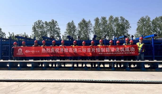 4月30日,中国十七冶交通分公司承建的山东济微高速三标项目首片预制箱梁顺利浇筑完成。