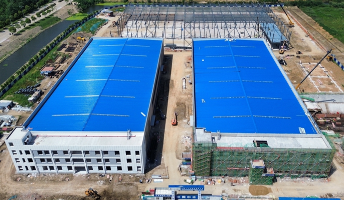 为确保项目按时保质保量交付,项目部贯彻落实十七冶“大干二季度、确保双过半”会议部署,领导班子带头深入施工一线,查安全、抓质量、促进度,通过定期召开周例会、月例会,深度分析影响进度的不利因素和下一阶段的破局措施,筹备施工资源、优化施工组织,确保项目按照既定节点顺利推进。截至目前,1#厂房稳步推进收尾工作,预计于五月底交付业主;2#厂房正在进行附属办公楼装饰装修及内隔墙粉刷施工;3#厂房正在进行钢结构吊装;5#开闭所顶板已浇筑完成;6#消防泵房底板浇筑完成;7#危废库正在进行承台基础钢筋绑扎。