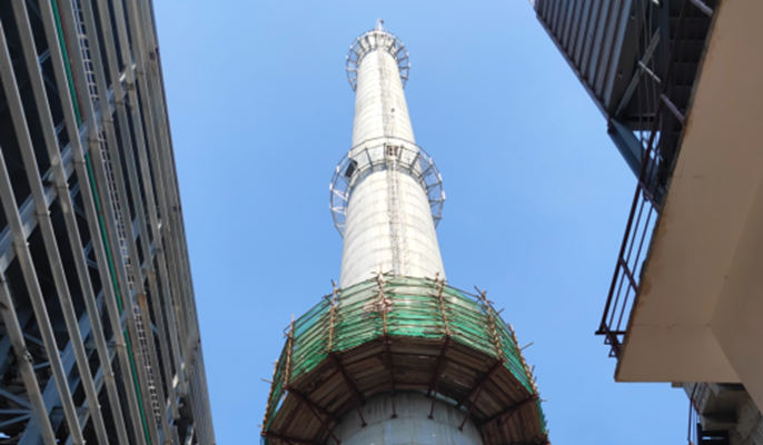 福建三明三钢项目新1#高炉 2#水渣处理烟囱封顶