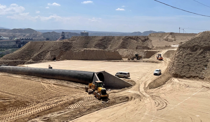 LHQZ-ZB1-2项目位于甘肃省兰州市,全长11.44千米,路线向北沿途设隧道群穿越园林山、凤凰山、大河坪等山岭,终点位于皋兰县和平村。本标段设计8道钢筋混凝土盖板涵、3道波纹管涵,此次浇筑的波纹管涵是本标段最大的波纹管涵,长52米、孔径4米、右偏角90°、涵底设4%纵坡,采用分片式CSCP E4000型金属波纹管涵(中径4000毫米、波高55毫米、管壁厚6.5毫米)的排洪涵,进口设八字墙,出口设直八字墙接120米急流槽排至蒸发池,并在急流槽底部每4米设置一道防滑坎。