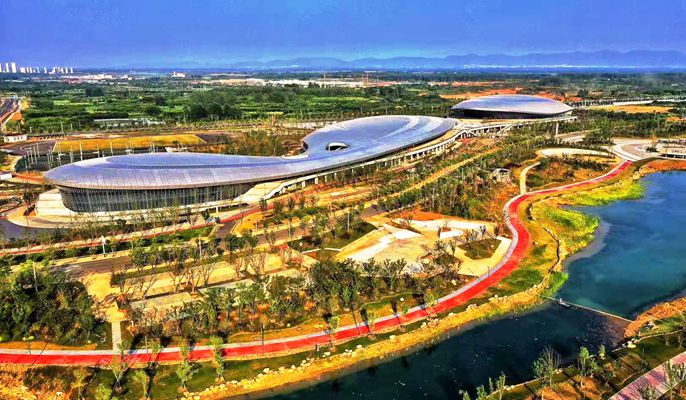 滁州高教科创城文体活动中心工程是安徽省“861”重点工程,也是滁州市十大重点工程之一,位于滁州市南谯新区乌衣镇内。工程包括手球馆、文化中心及游泳馆,总建筑面积约73257.86平方米,手球馆为弦支穹顶结构,文化中心及游泳馆为纵横相交异形桁架结构,飘带为异形树状柱加异形网架结构。其中手球馆弦支穹顶区域最大跨度为76米,悬挑桁架最大悬挑为33米,游泳馆最大跨度38米,文化中心屋盖钢结构最大跨度44米。工程框架结构多为“圆弧形”异型结构,屋面多为大跨度钢网架钢结构,工程采用大量的曲线设计,呼应建筑 “飞燕”及“祥云”的设计立意。