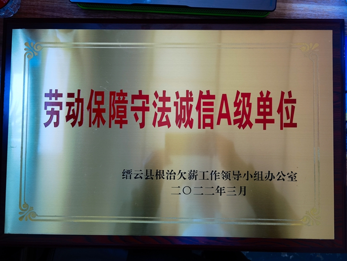 4月8日,从缙云县根治欠薪领导小组办公室获悉,中国十七冶集团路桥工程技术分公司330国道缙云东渡至永康交界段改建工程项目获评缙云县2021年度劳动保障守法诚信A级单位。
