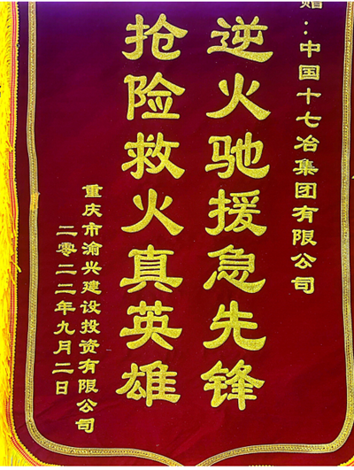 重庆市渝兴建设投资有限公司向十七冶项目送锦旗并致感谢信