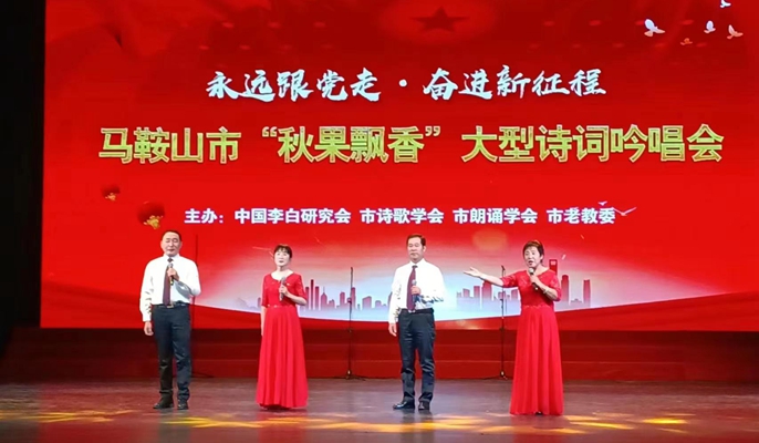 11月16日上午,由中国李白研究会、市诗歌学会、市朗诵学会、市老教委联合主办的“永远跟党走 奋进新征程”马鞍山市“秋果飘香”诗词吟唱会在市人民会堂举行。11月16日下午,由市委组织部、市委宣传部、市委老干部局、市文旅局、市老教委主办的“永远跟党走 奋进新征程”市老年教育系统·老干部系统专场文艺汇演在马鞍山理工学校举行。
