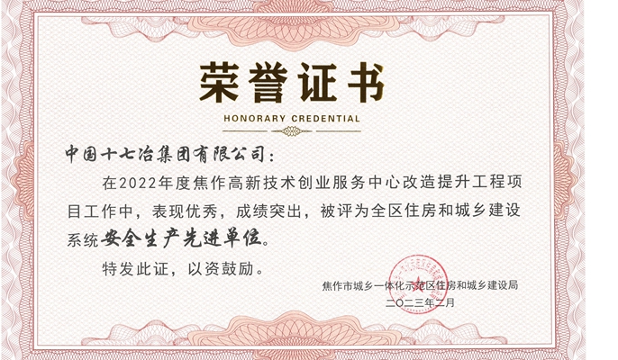 2月20日,从焦作市示范区住建局传来喜讯,中国十七冶在承建河南焦作高新技术创业服务中心项目中表现优秀,获评“焦作市示范区住房和城乡建设系统安全生产先进单位”,项目经理水龙飞获评“焦作市示范区住房和城乡建设系统安全生产先进个人”。