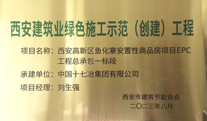 近日,从西安市建筑节能协会获悉,中国十七冶建筑分公司承建的西安高新区鱼化寨安置性商品房项目荣获“西安市建筑业绿色施工示范工程”称号。