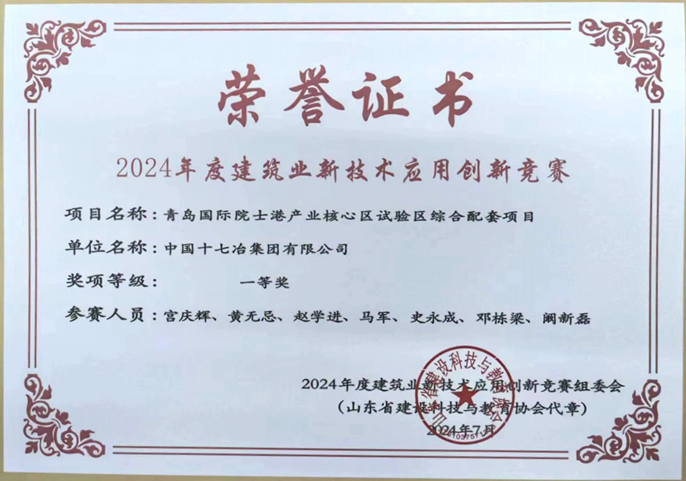 近日,2024年度山东省建筑业新技术应用创新竞赛成绩公布,中国十七冶青岛国际院士港综合配套项目申报的创新成果荣获大赛一等奖。