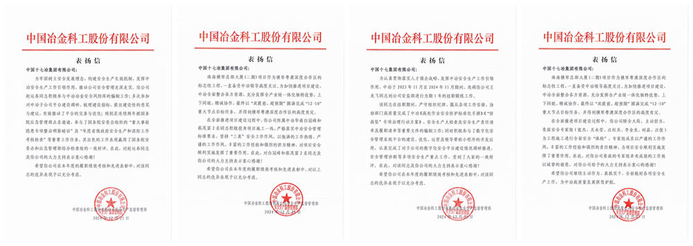 近日,中国中冶向中国十七冶发来4封表扬信,对公司积极选派优秀干部员工,助力推进中国中冶重大项目和重点任务给予充分肯定对在安全生产领域作出重要贡献、圆满完成集团公司各项任务安排的干部员工提出表扬。