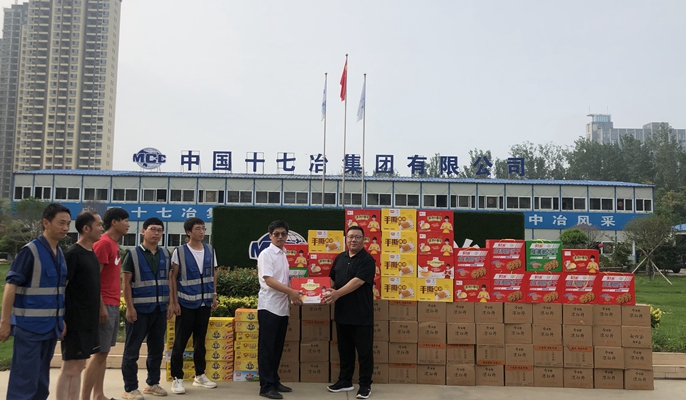 7月23日下午,河南天河投资有限公司副总经理马力到中原分公司大河社区安置房项目部,向一线员工送上了矿泉水、面包、火腿肠等慰问品,对受灾项目的广大职工进行慰问。在项目现场,马力副总经理对项目部抢险救灾工作表示了肯定,并嘱咐项目部要把人民生命财产安全置于第一位,在保证安全的情况下尽快恢复生产。同时表示了对双桥项目部全体一线员工的关心,鼓励大家要团结一心,不畏困难,平安度过此次灾情,并送上了慰问物资。