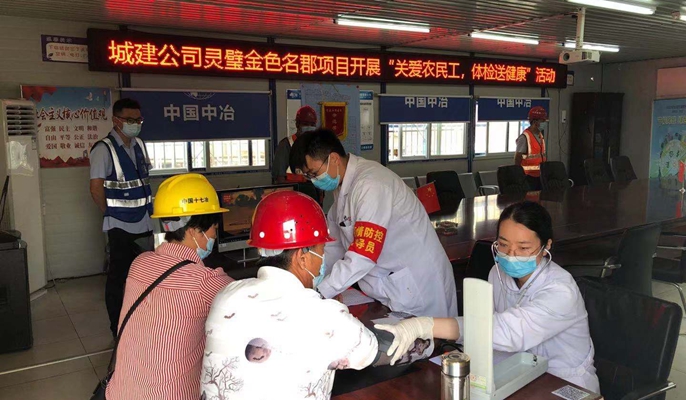 8月24日,十七冶灵璧金色名郡项目部开展“关爱农民工,体检送健康”活动,为200余名农民工免费进行健康体检。