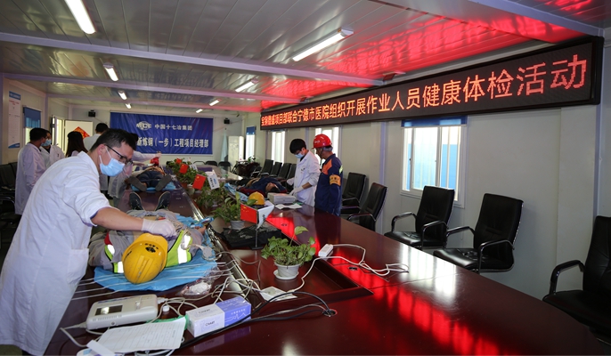 为了让工人全面了解自己的身体健康状况,提高健康意识,切实营造良好的施工环境。10月31日,中国十七冶集团冶金分公司宝钢德盛项目部特邀请当地医院10余名医护人员走进项目,为现场一线工人进行健康体检。