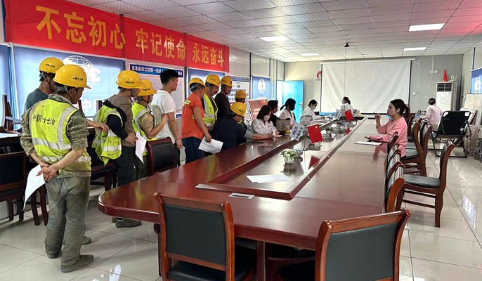 为切实保障一线工友的身心健康,3月12日,中国十七冶交通分公司当涂县创业创新中心项目邀请当地医院医务人员为220余名施工一线作业人员进行免费健康体检。