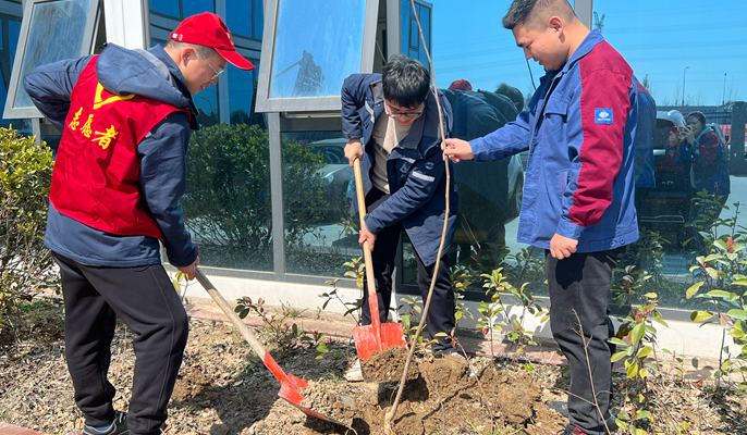 活动中,参加植树的党员团员们挥起铁锹干劲十足,充分发扬了不怕困难、迎难而上、吃苦耐劳的奉献精神,大家团结协作相互配合,铲土、栽树、培土、浇水等多道工序,衔接有序配合默契。经过一番热火朝天的劳动之后,新栽的树苗在春风里萌发出盎然生机。活动后,响水县人民医院项目党支部带领南京分公司盐城片区团支部在施工现场开展了节能降碳与绿色施工的宣传教育活动,宣贯了习近平生态文明思想与新发展理念,持续深化现场的文明施工意识,努力践行绿色施工,以实际行动,让“绿水青山就是金山银山”化为生动的现实。