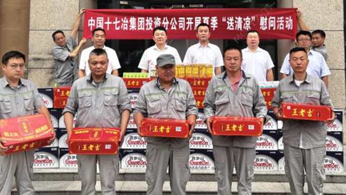为做好防暑降温工作,维护职工健康权益,7月15日,中国十七冶投资分公司到西安地区项目公司开展夏送清凉慰问活动。中国十七冶集团总经理助理张韬,副总经济师杨有谊,投资分公司副总经理余志忠,西安中冶管廊建设管理有限公司总经理黄伟等参加活动。