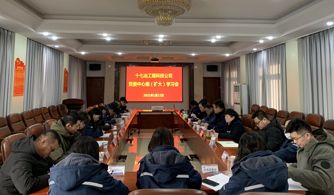 1月11日上午,十七冶工程科技公司党委开展党委中心组(扩大)理论学习暨党建工作会议,公司领导班子成员,总经理助理、副三总师,相关实体、部门负责人参加。