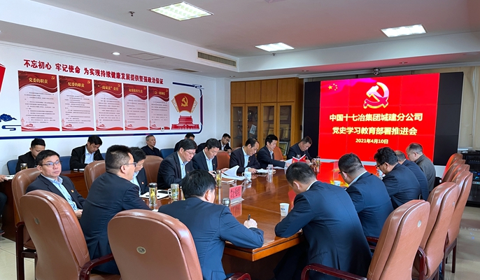 4月10日上午,十七冶城建分公司召开党史学习教育部署推进会,公司领导班子、机关各部门负责人以及各项目负责人参加会议。