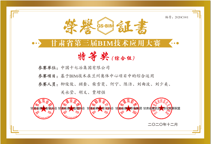 近日,由甘肃省建筑业联合会、甘肃省勘察设计协会、甘肃省建设监理协会等多家单位共同举办的甘肃省第三届BIM技术应用大赛终审答辩圆满结束,中国十七冶集团兰州奥体中心项目荣获大赛综合组特等奖,这是继中冶集团BIM大赛一等成果、中国勘察设计协会“创新杯”BIM大赛一等成果及中国建筑业协会BIM大赛一等成果后,该项目取得的又一奖项。