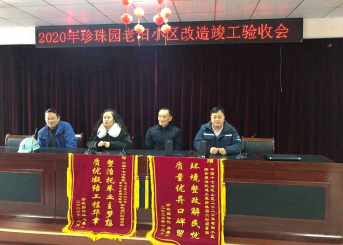 12月17日,在马鞍山花山区竣工验收会上,珍珠园社区和业主委会向十七冶马鞍山花雨老旧小区改造项目赠送两面锦旗,对项目部高质量改造老旧小区以及热情周到的服务表示感谢。