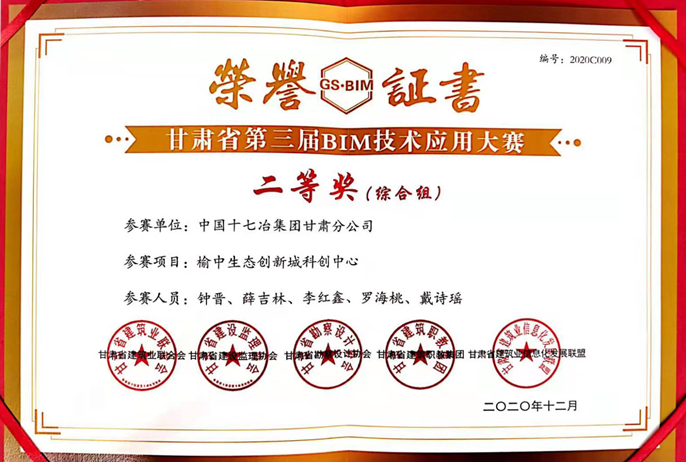 12月24日,中国十七冶集团西北公司承建的兰州新区瑞岭国际项目二标段工程、兰州新区高新技术产业园拆迁安置房项目二期三标段、兰州新区职教园区兰州现代职业学院项目主行政楼、省道301线海石湾至岗子沟公路川海大桥连接线工程、兰州北绕城东段高速公路盐场堡至什川连接线青白石互通立交一期工程等5项工程荣获2020年度兰州市建设工程“白塔奖”。榆中生态创新城科创中心工程项目荣获甘肃省第三届BIM技术应用大赛综合组二等奖;榆中园区棚户区改造2#安置区EPC总承包工程项目荣获甘肃省第三届BIM技术应用大赛专项组三等奖。